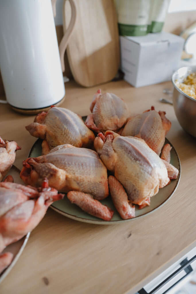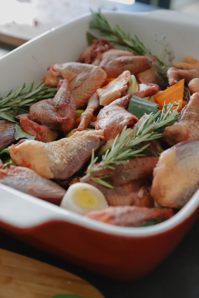 • 4 pigeons désossés (garder les carcasses pour le bouillon)